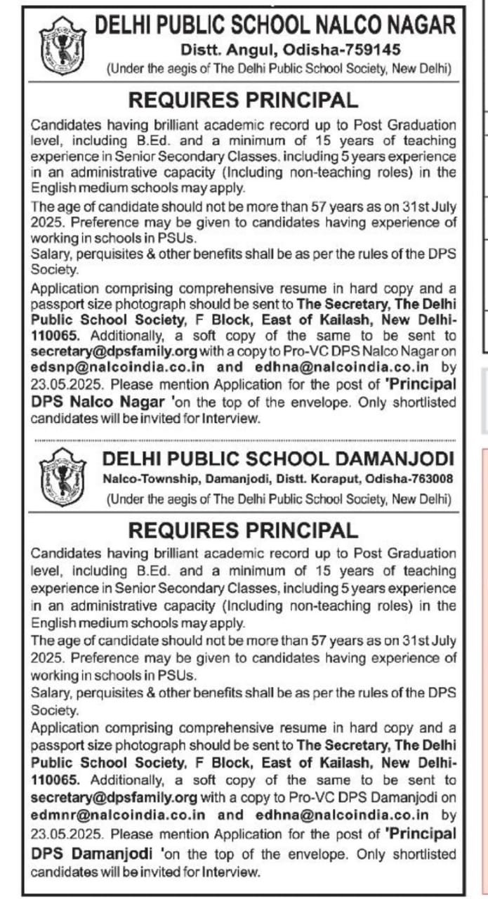 ADVERTISEMENT FOR PRINCIPAL RECRUITMENT - 20252025-05-09